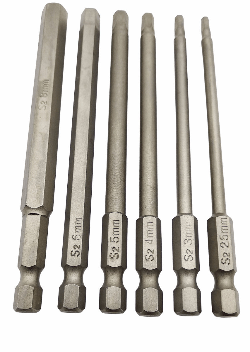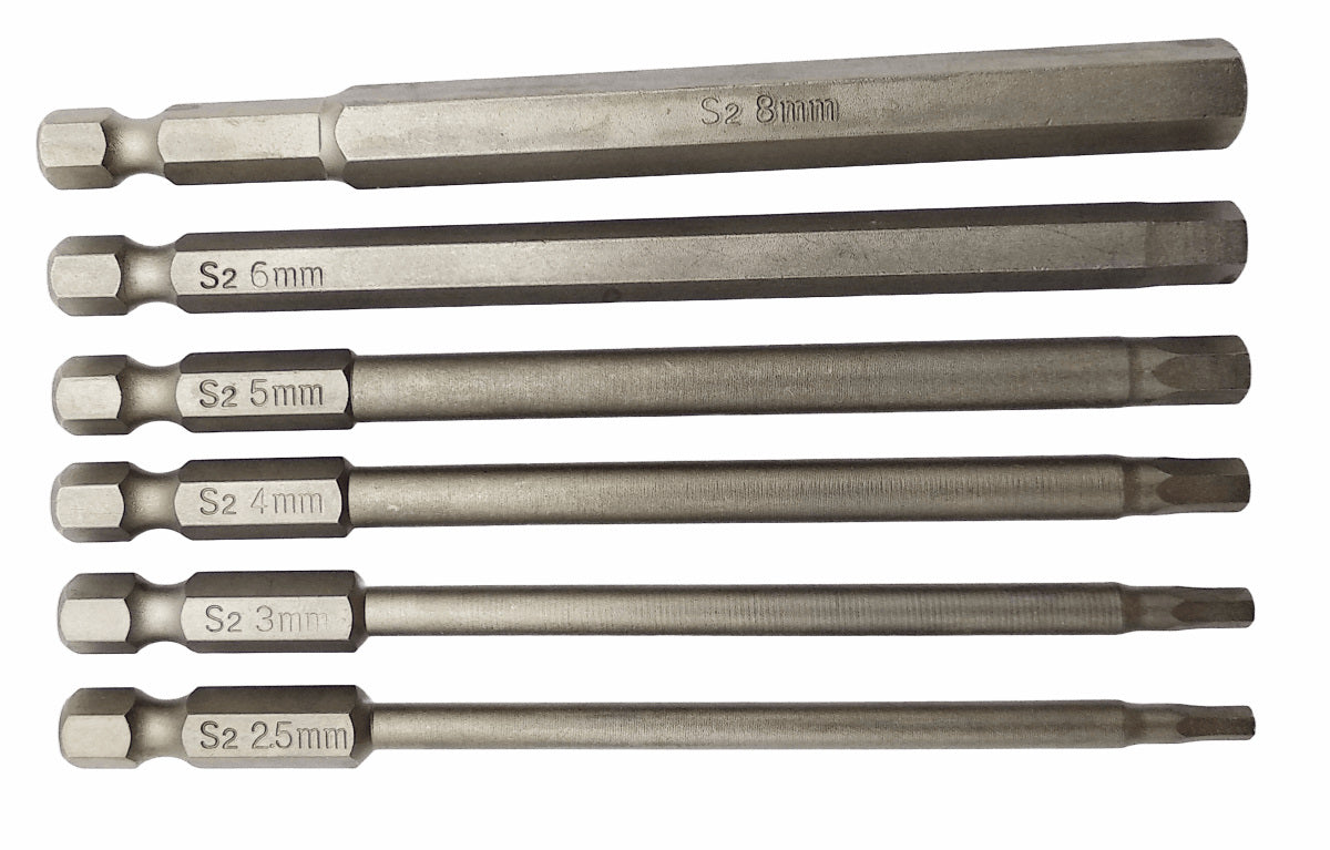 6tlg Bit Set S2 Stahl 100mm Innensechskant (kompatibel zu / passt für Inbus Schrauben), 2,5/3/4/5/6/8 mm magnetisch