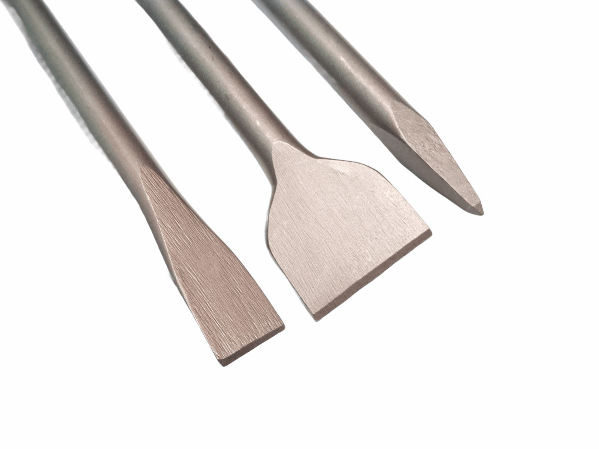 Lieferumfang: 1 x Flachmeißel + 1 x Spitzmeißel + 1 x Breitmeißel