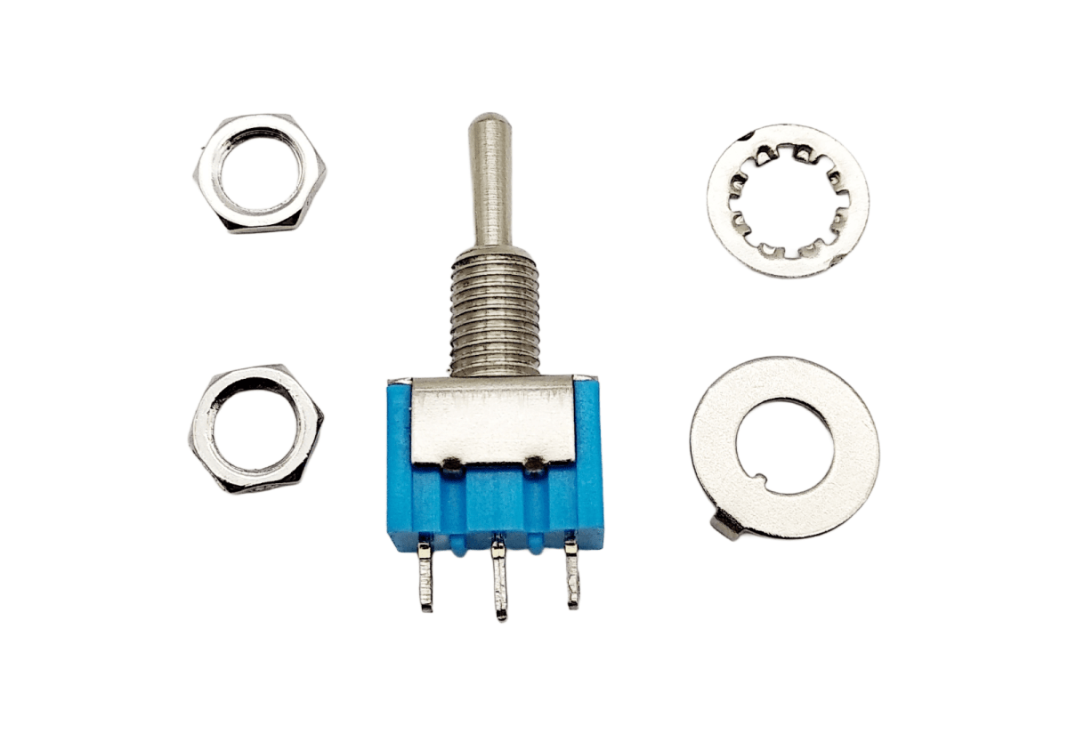 Lieferumfang: 1 Schalter, 1 Zahnscheibe, 2 x Mutter, 1 Unterlegscheibe