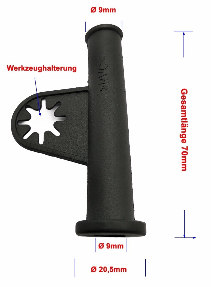 mit seitlicher sternförmiger Werkzeughalterung, zB zur Befestigung eines Stirnlochschlüssels für den Scheibenwechsel bei Winkelschleifern. Oder zum Befestigen des aufgewickelten Kabels an der Maschine.